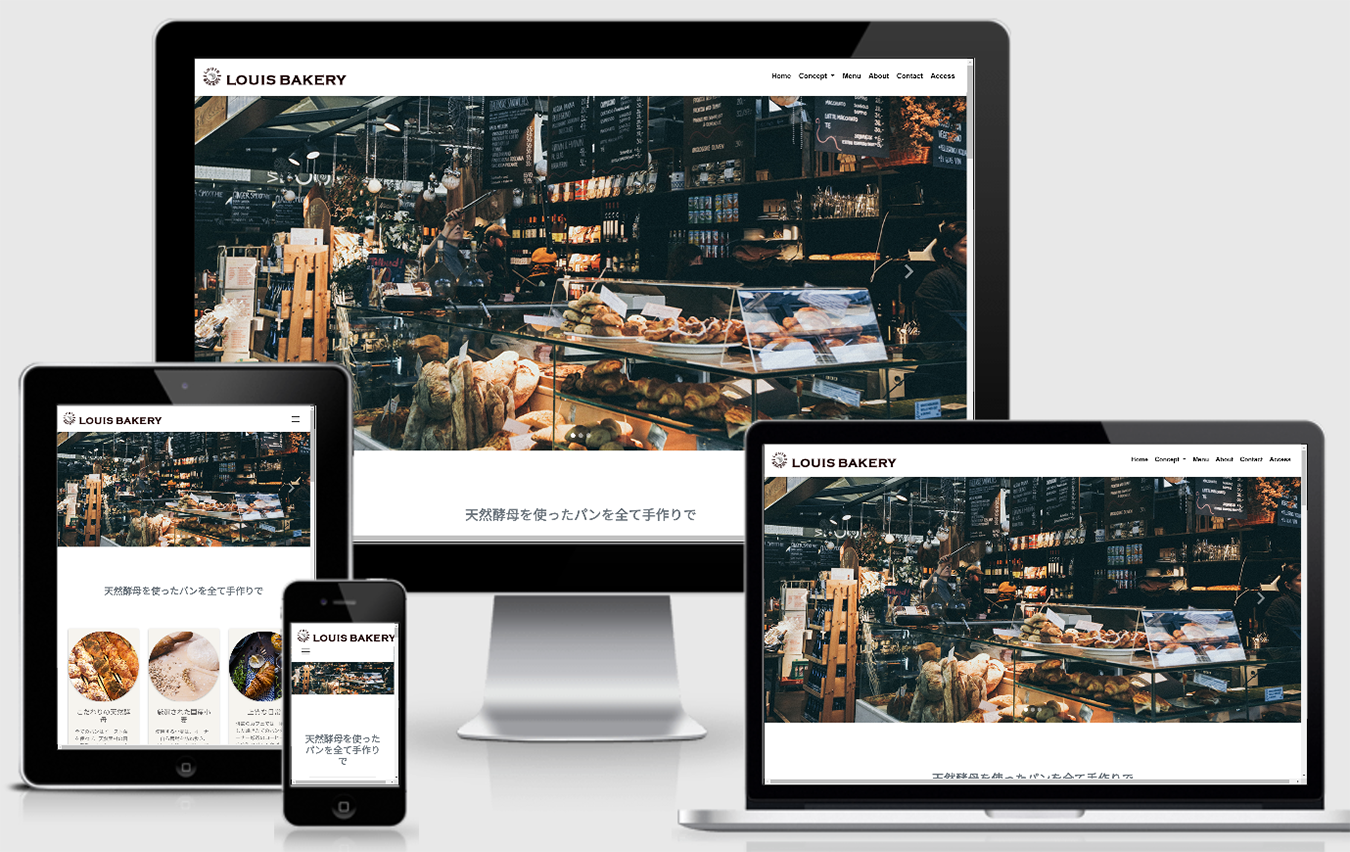 お客様プレゼンのたたき台として制作。架空のパン屋 LOUIS BAKERYのWEBサイト。